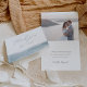 Ce carte de remerciements plié de la collection Low Tide de Navy Road Creative présente une aquarelle bleue brumeuse et un élégant script "merci" sur le devant. A l'intérieur, il y a de l'espace pour un message personnalisé et une photo du couple, parfait pour exprimer sa gratitude après un mariage à la plage ou à la destination.