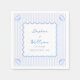 Diese Servietten zeichnen sich durch ein reizvolles, an der Küste inspiriertes Design aus, das mit weichen, blau-weiß gestreiften Rändern, zarter Muschel in den Ecken und einem waagerechten Rahmen mit elegantem Schriftzeichen versehen ist. Die Namen, das Datum und die Lage machen sie zu einem idealen Ort für eine Hochzeit im Wasser, am Strand oder am Meer. Die hellblaue Farbpalette erinnert an ein frisches und luftiges Ambiente, das sich ideal für eine Hochzeit im Sommer in Nantucket, den Hamptons oder an jedem beliebigen Küstenziel eignet.