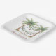 This fun coastal holiday inspired Christmas party paper plate features palm trees decorated with ornaments and a hammock. Personalize the with your choice of special text. Great for personalized holiday party decorations and supplies.