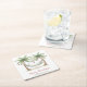 This fun coastal holiday inspired Christmas party paper coaster features palm trees decorated with ornaments and a hammock. Personalize the with your choice of special text. Great for personalized holiday party decorations and supplies.
