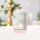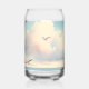 A serene coastal scene captures a graceful lighthouse standing tall beside calm waters as soft clouds drift across a pastel sky. Gentle seagulls glide through the air, adding movement and life to the tranquil horizon, while muted blues, creams, and sandy tones create a soothing, dreamy palette. This artwork evokes a peaceful seaside escape with a cottagecore coastal charm, blending whimsical softness with airy, light-filled composition. AI generated artwork.