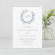 Ideal für Hochzeiten am Strand und im Wassersport, ein Korallenkreat umrahmt die Monogramm-Initialen der Braut und des Bräutigams an der Spitze dieser eleganten minimalen weißen und staubblauen Einladung. Die Rückseite ist eine solide staubige blaue Farbe.
