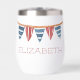 This personalized thermal wine tumbler features nautical flag banners in soft watercolor shades of red, white and blue. Personalize the front with your choice of name and the back with your choice of special text. Fun for personalized party favors and gift bags.