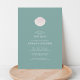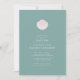 Elegant baptism invitation design featuring a hand-painted pink and white shell on a sage green background that creates a timeless, coastal feel—perfect for modern, minimalist, seaside-inspired baptisms. The shell represents an old baptism symbol that was used to pour the water.