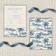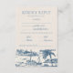 Coastal Toile Classic Script Dusty Blue RSVP Karte