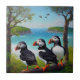 Coastal Trio: Drei Puffins am Strand in Oils Fliese