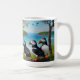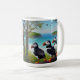 Coastal Trio: Drei Puffins am Strand in Oils Kaffeetasse
