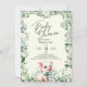 Belle invitation au baby shower avec adorable porcelet entouré de verdure et de fleurs d'aquarelle. Un joli script écrit à la main pour le Baby shower est parfait pour cet invitation doux et neutre. Recoordonner. Voir la coordination des articles dans notre boutique, Enchanted Finch.