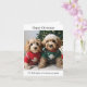 Cockapoo-Welpen, die ihre besten Weihnachtspullover tragen, wünschen Ihnen ein frohes Weihnachtsfest - PS: Sagen Sie dem Weihnachtsmann, dass sie sehr gut geblieben sind. Sie will nicht, ihre Weihnachtsferien-Leckereien zu verpassen!