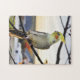 Foto eines bunten Cockatiel, der in einem Baum hockt.
