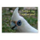 This strange character is called a blue eyed cockatoo ou cocky. Related to a parrot, this unique Australian bird has white feathers, a distinc tive blue featherless ou bientôt circle around its eyes, a gray beak, et a crest of feathers characteristic of most cockatoos. C'est un jeu de mots. I took this photo in the Grampians National Park à Victoria, Australia.