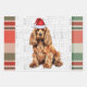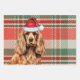 Ein bezaubernder Cocker Spaniel Hund ist bereit für die Ferienzeit mit einer niedlichen Weihnachtsmannmütze und gepaart mit einem rot-grünen Urlaub kariert auf diesem Set der Geschenkpackung für den Hundeliebhaber.