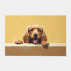 The soft warm honey gold background adds a cozy and inviting touch, perfect for welcoming entryways. Designed with extra space at the top and bottom, it allows easy personalization with names, welcome messages, or custom text—making it ideal for unique dog-themed doormats and thoughtful gifts.