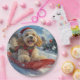 Cocker Spaniel Hund in Sledge Lass es Schnee Weihn Pappteller