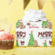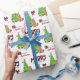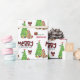 Das wiederholte Muster auf diesem niedlichen Weihnachtsverpackungspapier ist ein Bild eines bezaubernden, bärtigen Cocker Spaniers, der eine rot-weiße Weihnachtsmannmütze trägt. Der Hund sitzt neben einem geschmückten Weihnachtsbaum unter hellen Geschenkpackungen. Ein Stiervogel landet auf dem Baum dahinter. Stilisierter, roter und schwarzer Büffel karierter Text sagt MERRY CHRISTMAS", und Ihre eigene Unterschrift ist in zwei Bereichen für Sie individuell.