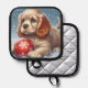 Cocker Spaniel Welpe auf Schnee mit einer Kugel Topflappen