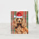 Ein Cocker Spaniel modisch gekleidet für die Saison, Paare mit einem roten und grünen kariert in einem lustigen, kleineren als durchschnittlich und gefalteten Urlaub Gruß.