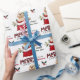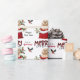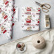 Das wiederholte Muster auf diesem niedlichen Weihnachtsverpackungspapier ist ein Bild eines blonden Cocker Spanisch Welpen Hundes, der aus einer rot-weißen Weihnachtsgeschenktüte herausguckt. Hinter ihm steht ein Gezeter aus heiligen und roten Beeren. Ein roter und schwarzer Bullfinch-Vogel wird bald landen. Stilisierter roter und schwarzer Büffel karierter Text sagt MERRY CHRISTMAS", und "Happy New Year" ist in dunkelgrün. Ihre eigene Unterschrift ist in zwei Felder für Sie zu personalisieren.