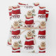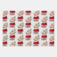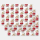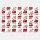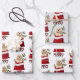 Das wiederholte Muster auf diesen Weihnachtsblättern ist ein Bild eines bezaubernden spanischen Welpenhundes, der aus einer rot-weißen Weihnachtsgeschenktüte herausguckt. Hinter ihm steht ein Gezeter aus heiligen und roten Beeren. Stilisierter, roter und schwarzer Büffel karierter Text sagt MERRY CHRISTMAS". Der Hintergrund auf zwei der Blätter in diesem Set ist weiß, während das dritte Blatt silber ist.