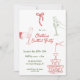 Cocktail de Noël invitation dans un style branché et fantaisiste dessiné à la main. Des mains illustrées avec des verres à vin et une tour de champagne.