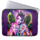 Das ist eine farbenfrohe, trippige, surreale Pop-Illustration eines Mädchens am Strand, das Cocktail oder Mocktail trinkt. Sie genießt heiße Sommervibes.
