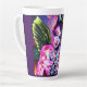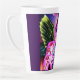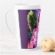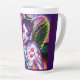 Das ist eine farbenfrohe, trippige, surreale Pop-Illustration eines Mädchens am Strand, das Cocktail oder Mocktail trinkt. Sie genießt heiße Sommervibes.