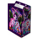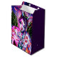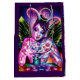 Das ist eine farbenfrohe, trippige, surreale Pop-Illustration eines Mädchens am Strand, das Cocktail oder Mocktail trinkt. Sie genießt heiße Sommervibes.