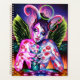 Das ist eine farbenfrohe, trippige, surreale Pop-Illustration eines Mädchens am Strand, das Cocktail oder Mocktail trinkt. Sie genießt heiße Sommervibes.