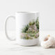 Diese Tasse zeigt ein hübsches Aquarellbild einer Hütte in einem blühenden Garten. Das Bild wird zweimal produziert, sodass es auf beiden Seiten der Tasse angezeigt wird.