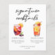 Dieses erfrischende Cocktails-Cocktails-Menu am Nachmittag bietet eine schlichte schwarze Typografie über 2 Drinks und deren Zutaten für Ihre Hochzeitsfeier. Ein niedlicher Sommer Sangria und Tequila Sonnenaufgang zeichnend fügen einen coolen Flair zu Ihrem Bar Menü. Füllen Sie bitte die Namen des Paares und das Datum für seinen Empfang aus.