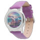Kinderuhr aus Edelstahluhr mit lila Lederarmband