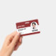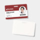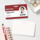 Un badge du personnel moderne avec une mise en page professionnelle avec un code à barres sous la photo de l'employé. Idéal comme carte d'identité d'employé pour votre entreprise ou votre lieu de travail. Ajoutez la photo, le nom et le métier de votre employé, ainsi que votre propre code à barres. Des informations facultatives telles qu'un numéro d'identification de badge ou une date d'expiration peuvent être incluses ou laissées en blanc. Couleur : Rouge marron
