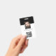 badges d'identité professionnelle avec un arrière - plan noir et blanc, photo de l'employé, nom, profession, code QR, logo d'entreprise et détails de l'entreprise.