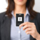 badge de logo personnalisé pour vos employés d'entreprise. Il vous suffit de remplacer cet exemple de logo par votre propre logo et d'ajouter votre nom et tout titre. Simple moderne minimaliste sur noir.