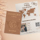 Carte du monde Boho moderne Invitation Mariage Destination, comme passeport, avec votre monogramme. Ajoutez votre code QR. Couleur arrière - plan en terre cuite orange brûlée