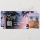 Destination Billet de carte d'embarquement de mariage sur la plage Or Plan Enregistrer la date avec cœur et icône d'avion avec une simple carte du monde en ligne art minimaliste et fond de plage palméeAjoutez votre code QR