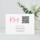 Rationalisez votre planification mariage avec nos cartes RSVP élégamment conçues, complétées par un code QR pratique qui oriente les invités vers votre site Web mariage pour des réponses faciles. Ces cartes sophistiquées ne sont pas seulement pratiques ; elles sont un composant élégant de votre papeterie mariage, avec une couleur rose magenta vibrante au verso qui ajoute une pop de couleur et complète tout thème mariage, en particulier ceux avec des éléments audacieux ou vibrants. Chaque carte offre un grand espace pour le texte personnalisé sur le devant, vous permettant de personnaliser avec vos détails, comme la date mariage et la date limite RSVP. L'inclusion d'un code QR modernise le processus RSVP traditionnel, permettant aux invités de confirmer leur présence avec une simple analyse, les conduisant directement à votre site Web mariage personnalisé où ils peuvent trouver des détails supplémentaires, laisser des messages ou choisir des options de repas. Conçues pour votre commodité et votre style, ces cartes RSVP allient élégance traditionnelle et fonctionnalité moderne, assurant à vos invités toute l'information dont ils ont besoin au bout de leurs doigts. Parfaites pour les couples férus de technologie qui cherchent à ajouter une touche de sophistication audacieuse à leurs communications mariages, ces cartes raviront vos invités et feront de la gestion de votre liste d'invités une brise.