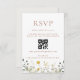 Carte de réponse pour un mariage avec un site web et un code QR avec un design élégant de fleurs sauvages sur un fond de couleur neutre.