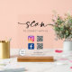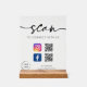 Script moderne "scanner pour se connecter avec nous" signe acrylique. Customisez ce panneau avec votre code QR, logo d'entreprise et informations sur les médias sociaux.
