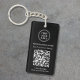 Porte - clé de promotion noir moderne et professionnel avec votre code QR pour les clients à rechercher une liste de vos produits, services, prix ou autres informations. Téléchargez votre logo et votre code QR et ajoutez votre nom d'entreprise, votre site Web, votre slogan d'affaires, votre numéro de téléphone, etc., dans une simple typographie blanche.