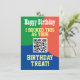 Célébrez un anniversaire avec une carte personnalisée montrant votre choix de code QR qui renvoie le destinataire à une page Web de votre choix. Ajoutez également votre propre message personnel à l'intérieur.