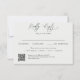 RSVP en style avec notre carte RSVP minimaliste et élégante Conçue pour le couple exigeant, notre carte RSVP combine simplicité et sophistication. Offrant des options de réponse traditionnelle et numérique, les clients peuvent choisir leur entrée avec le formulaire traditionnel ou scanner facilement le code QR pour des réponses numériques. Sur le dos, vos monogrammes élégants apportent une touche personnalisée. Parfait pour vous assurer que votre journée spéciale est à la fois organisée et inoubliable.