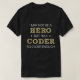 Ich bin vielleicht kein Held, aber ich bin ein Coder, der so nah genug humorvolle Wortkunst in Sans-Serif und doodle Cross-Luch-Schriftart in weiß und golden gelb schreibt.