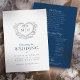Programme de mariage monogramme de couronne de coeur d'argent. Personnalisez votre propre design d'initiales monographiques. Bleu foncé, argenté et blanc immaculé. D'autres couleurs et objets correspondants sont disponibles. Idéal pour un mariage à thème prussien bleu ou argent classique, blanc et bleu. © Heart wreath art et design par Sarah Trett pour www.mylittleedenweddings.com sur Zazzle