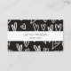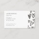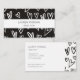 Disposez-vous avec un carte de visite de coeur artistique avec des coeurs motifs sans couture dessinés à la main sur un arrière - plan noir avec un rectangle blanc au milieu tenant un monogramme dans une police minimaliste moderne. Le côté arrière a toutes vos informations personnelles dans la même police gauche alignée avec les coeurs noirs sur la bordure arrière - plan blanche à droite.