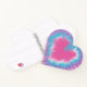 Il s'agit d'un joli carnet rose cravate, bleu clair, violet et blanc en forme de coeur. Non seulement le carnet est en forme de coeur, mais le motif teint de cravate est également en forme de coeur, ce qui pourrait être utilisé comme journal pour adolescentes.