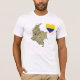 Un drapeau colombien en forme de coeur est placé à côté d'une carte de soulagement de la Colombie sur ce T-shirt distinctif patriotique.
