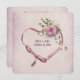 coeur en satin rose avec anneaux mariages et bouquet rose sur texture douce arrière - plan pour cérémonie mariage invitation
