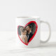 Vos photos préférées encadrées par un coeur rouge sur cette tasse blanche. *Pour de meilleurs résultats, téléchargez une photo carré qui a la personne la plus haute sur la droite et assez d'espace au-dessus des cheveux pour que le coeur ne coupe pas la tête. Vous pouvez aussi télécharger la même photo pour les deux côtés.