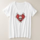 Cette chemise pour femmes plus grande a un coeur rouge avec des os blancs avec un crâne au centre du coeur.